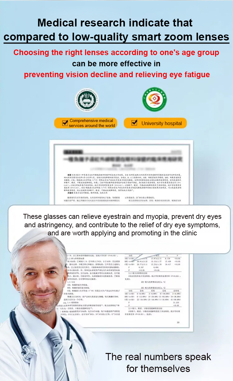 Our lenses automatically adjust to your vision (from -700 to +700 diopters) for crystal-clear sight at any distance.